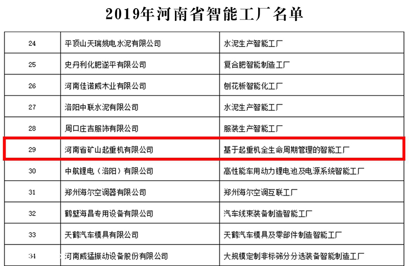 按照《河南省工業(yè)和信息化廳河南省財(cái)政廳關(guān)于印發(fā)2020年先進(jìn)制造業(yè)發(fā)展專項(xiàng)資金項(xiàng)目申報(bào)指南的通知》(豫工信聯(lián)規(guī)〔2019〕207號(hào)),經(jīng)企業(yè)自愿申報(bào),各省轄市、濟(jì)源示范區(qū)、各省直管縣(市)工業(yè)和信息化主管部門和財(cái)政部門初審、現(xiàn)場(chǎng)核查并推薦,省工業(yè)和信息化廳、省財(cái)政廳共同組織專家評(píng)審,網(wǎng)上公示,確定河南省礦山起重機(jī)有限公司等38個(gè)工廠為2019年河南省智能工廠