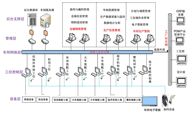 制造過(guò)程中,通過(guò)對(duì)人員信息、物料信息、設(shè)備狀態(tài)信息、產(chǎn)品設(shè)計(jì)與工藝信息、制造數(shù)據(jù)、庫(kù)存信息、物流信息等數(shù)據(jù)進(jìn)行采集、分析與處理,將數(shù)據(jù)上傳到生產(chǎn)執(zhí)行系統(tǒng),為生產(chǎn)系統(tǒng)提供制造數(shù)據(jù)管理、計(jì)劃排程管理、生產(chǎn)調(diào)度管理、庫(kù)存管理、質(zhì)量管理、設(shè)備管理、采購(gòu)管理、成本管理、能源管理、生產(chǎn)過(guò)程控制、底層數(shù)據(jù)集成分析、上層數(shù)據(jù)集成分解等管理模塊,打造一個(gè)扎實(shí)、可靠、全面、可行的制造協(xié)同管理平臺(tái)。