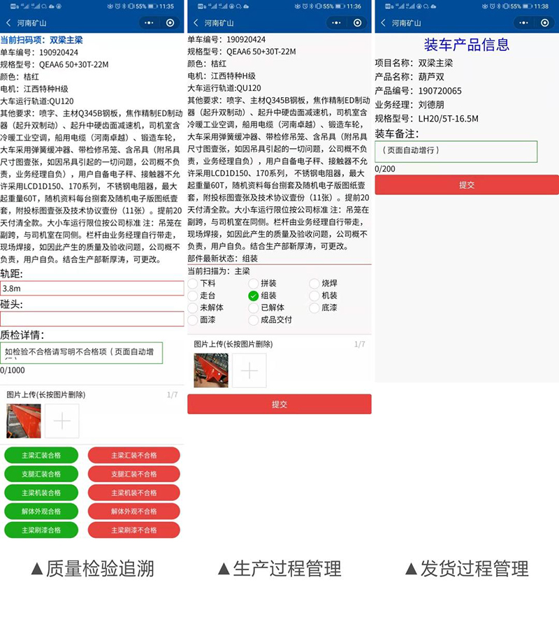 ▲基于二維碼現(xiàn)場(chǎng)生產(chǎn)、質(zhì)檢、發(fā)貨管理演示