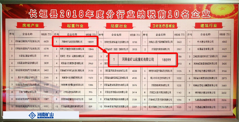 河南礦山榮獲長垣縣起重行業納稅第一名及創新驅動轉型發展先進單位
