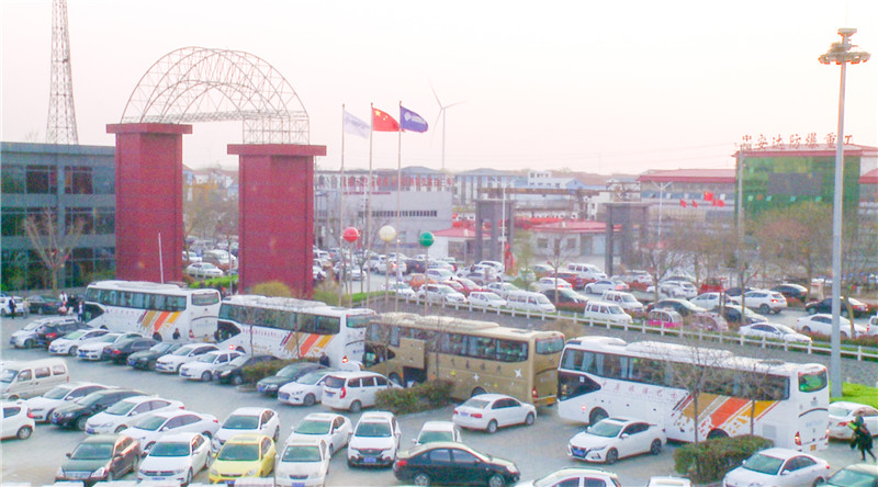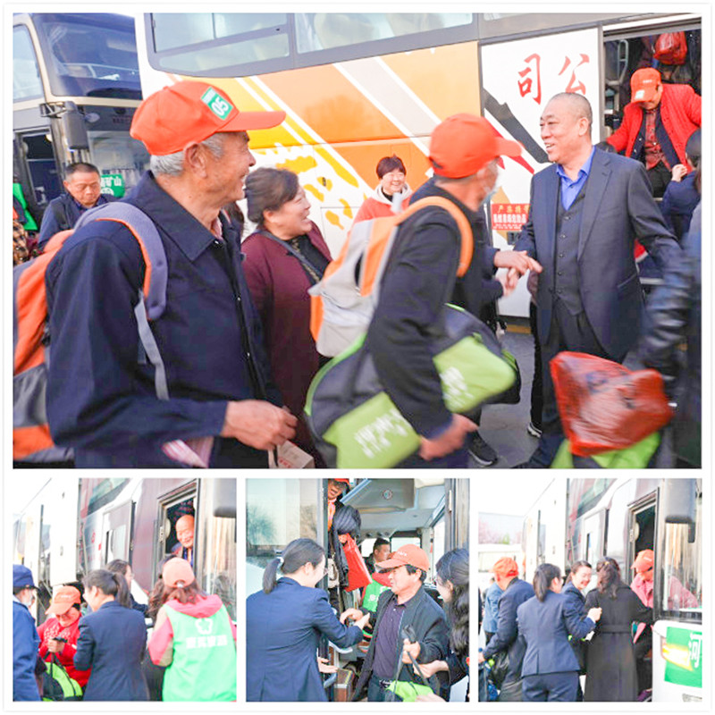 公司創始人、黨委書記崔培軍及其他領導和工作人員在公司廣場迎接父母們平安歸來。