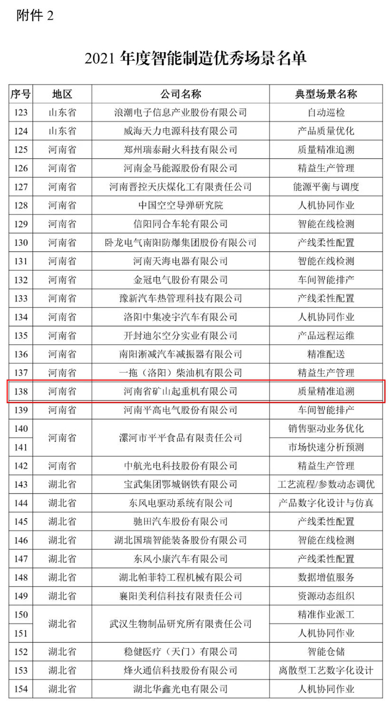 2021年度國家智能制造優秀場景,河南礦山榜上有