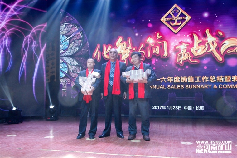 公司黨委書記崔培軍發表重要講話,他首先向蒞臨現場的各位領導及廣大業務精英們表示衷心的感謝和新春的祝愿,并指出公司能夠取得今日的成績,皆依賴于各級政府的大力支持、廣大業務精英的奔波拼搏和全體員工的團結奮戰。他說,自己也是跑業務出身,深知跑業務的艱辛,在外受盡白眼,因為公司在生產進度、核價報價、售后服務、手續辦理、拉車裝車等各個方面存在的不足,他鄭重向大家表示歉意。也正因為如此,河南礦山將不遺余力地推行簡單化管理,把復雜的問題簡單化,把簡單的問題更簡單,盡最大努力為廣大業務經理在各個方面提供便利。他提出,河南礦山的企業根基是孝道,一個人的做人根本也是孝心,什么都可以等,唯獨孝不能等。業務經理們常年奔波在外,回家的時間很少,自己將代替大家盡孝心,明年繼續帶領大家的父母雙親外出旅游。他總結道,人生于天地之間,最重要的人品,中華民族的文化精髓是“厚德載物”,一個人要贏得別人尊重,最核心的品質就是做人厚道,希望大家永遠記在心間。