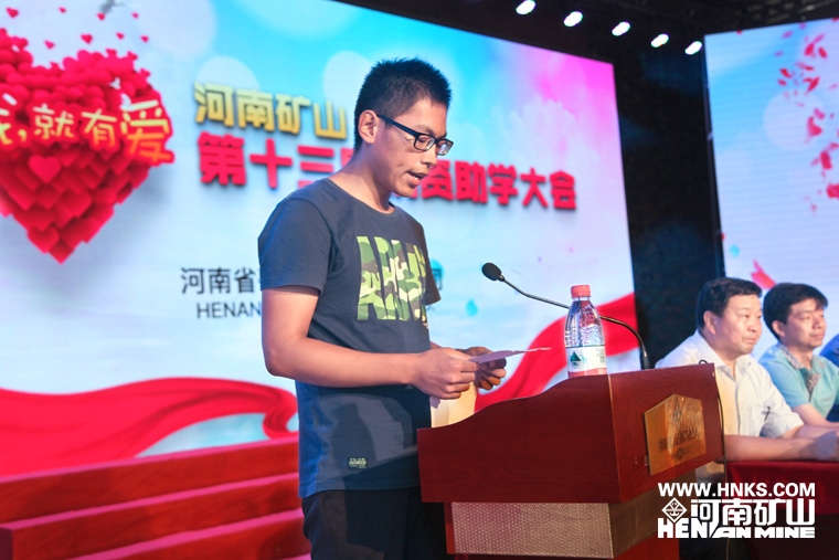 接著發言的是河南科技大學的李哲,即將進入大二的他,也是第二年領取助學金了。他說,母親在河南礦山工作多年,自己深知河南礦山的種種仁行大愛。他要時刻牢記崔書記的告誡,努力學習,踏實做人,早日成才。