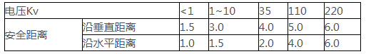 7、纜風繩與架空輸電線路及其它帶電體的安全距離不得小于下表的規定。