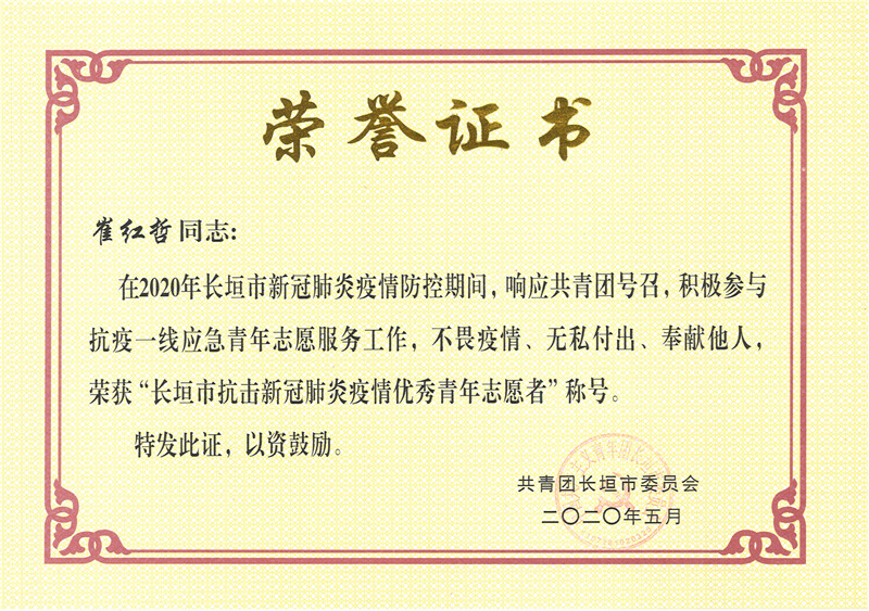 長垣市抗擊新冠肺炎疫情優秀青年志愿者