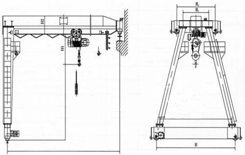 MHB型電動葫蘆半門式起重機與CD、MD、等型號的電動葫蘆配套使用,是一種有軌運行的中小型門式起重機。MHB型含義為單梁半門式起重機,其適用起重量:3T、5T、10T、16t、20T;跨度:7.5m、9M、19M、22.5米;起升高度: